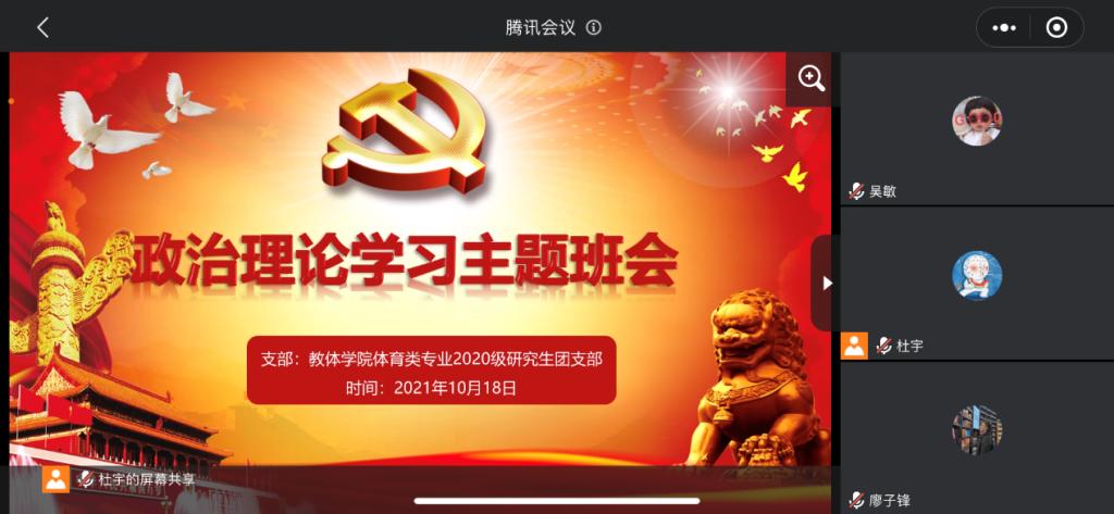 (通讯员:杜馨)为庆祝中国共产党成立100周年,进一步加强党史教育,领悟党的思想与精神,引导支部学习新思想、把握新动态,william威廉中文组织全院研究生于10月间分班开展政治理论学习活动。
