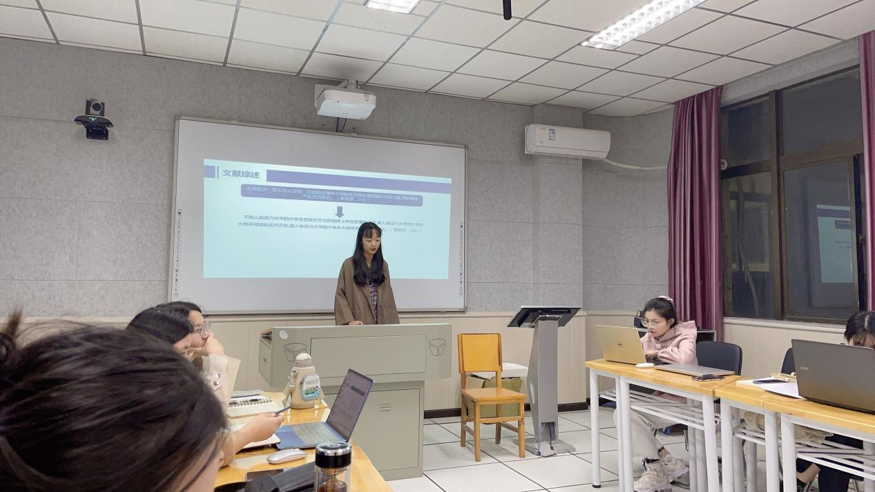 (通讯员 吴新丽)2021年11月1日,第97期社会心理学学术例会在11教201智慧教室举行。参加这次例会的有胡修银老师,郑雪艳老师和张艳红老师,以及研一至研三的同学们。本次会议由梁婷同学主持,由张竞月和廖七月两位同学进行汇报,张竞月汇报论文为《大学生未来自我连续性与从众消费心理的关系研究》,廖七月汇报论文为《交叉分类影响高阶层对低阶层的刻板印象》。