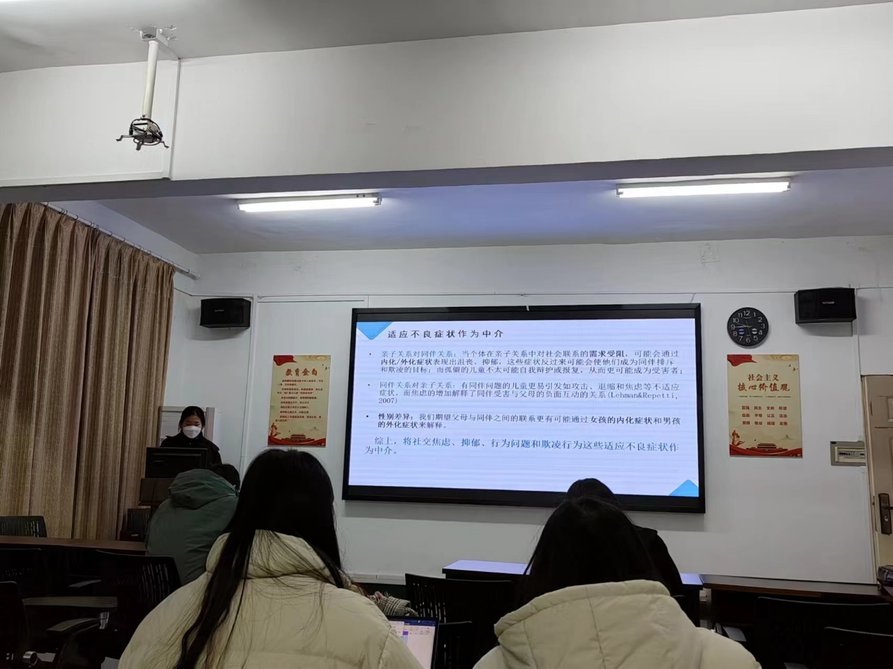 会议正式开始后,首先张泽同学为我们分享了来自于2020年Development and Psychopathology》杂志上发表的一篇文献,文献的题目为《Caught in a vicious cycle?Explaining bidirectional spillover between parent-child relationships and peer victimization》,文章主要探究以包括社交焦虑、抑郁、行为问题和欺凌行为的适应不良症状为中介是否会对亲子关系与同伴关系之间的关系造成影响。在汇报过后张泽同学指出自己在准备例会汇报中存在些许问题,未能及时发现文章质量而导致没有达到例会分享的效果,认识到自己需要提前做足准备,不能拖延。连老师也对张泽同学汇报的形式提出了些许建议,认为张泽同学还需在PPT的呈现、汇报时的语调上做出改进。