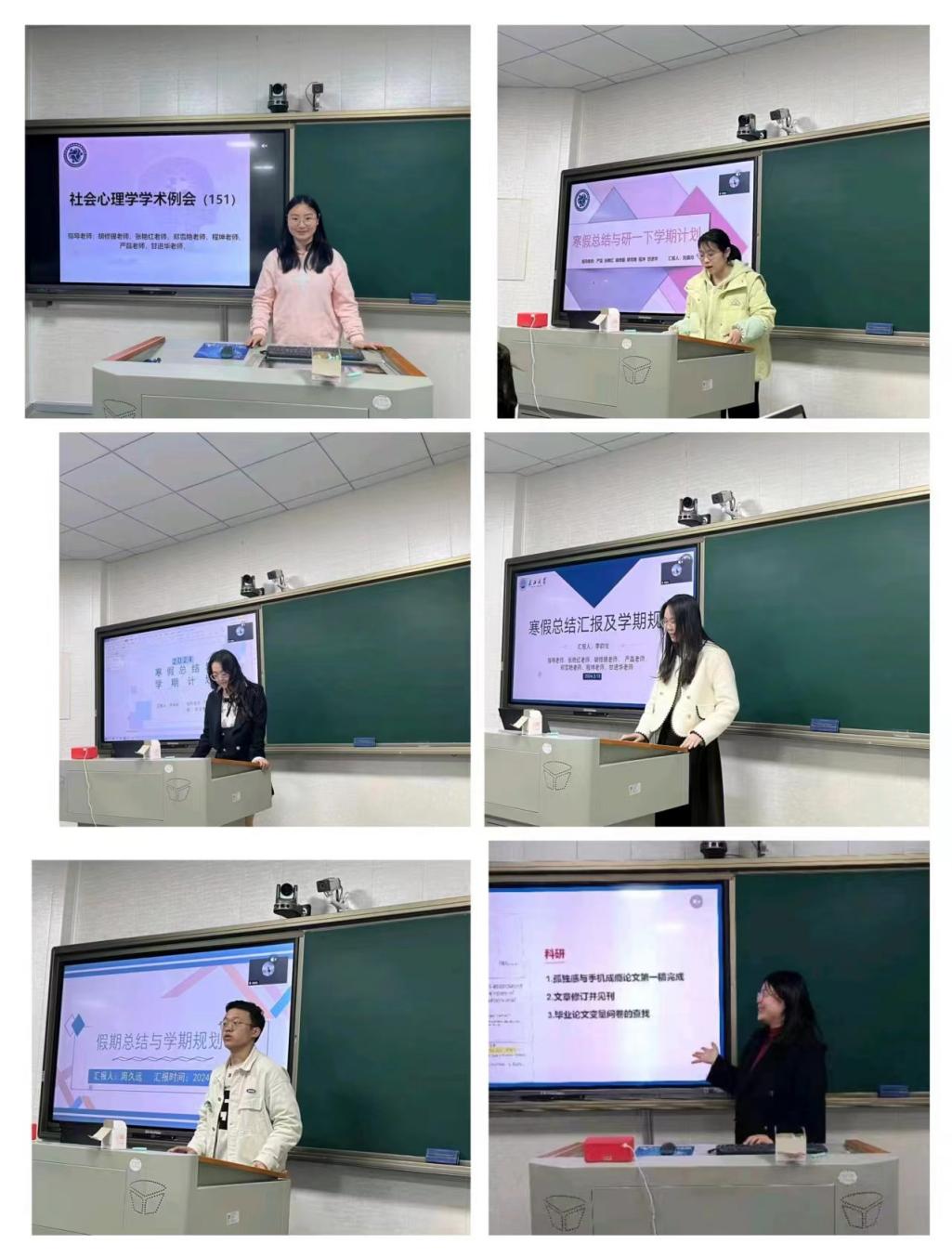 (通讯员:周久远)2024311日19时00分至21时00分,第151期社会心理学学术例会在11教205如期举行(线上线下相结合)。本次例会由研一张艳君同学主持,主题为“新学期、新目标、新征程”。参加本次例会的老师有张艳红老师、郑雪艳老师、严磊老师、甘进华老师,学生有11名心理学研究生、15名本科生科研助理以及大创组5名本科生。