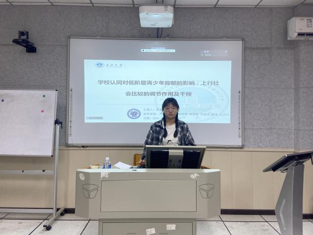 首先,由魏文欣、陈錾昕、李澳慧三名同学进行毕业论文进展汇报,汇报的内容分别是:《积极事件内容分享对青少年文化自信的影响机制及干预研究》、《中国传统文化负面信息对青少年文化自信的影响及干预研究》、《学校认同对低阶层青少年抑郁情绪的影响:上行社会的比较的调节作用及干预》。
