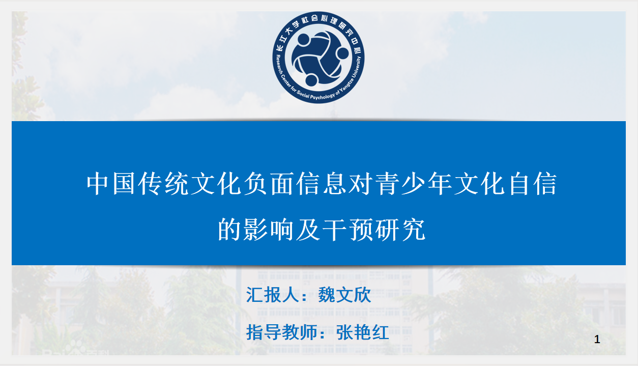 魏文欣的研究主要探讨中国传统文化负面信息对青少年文化自信影响的心理机制。主要为两个研究,研究一证明中国传统文化负面信息会引起青少年文化自信的变化,并且在认知灵活性的调节作用下产生不同结果。研究二是对认知灵活性的团体辅导干预研究。