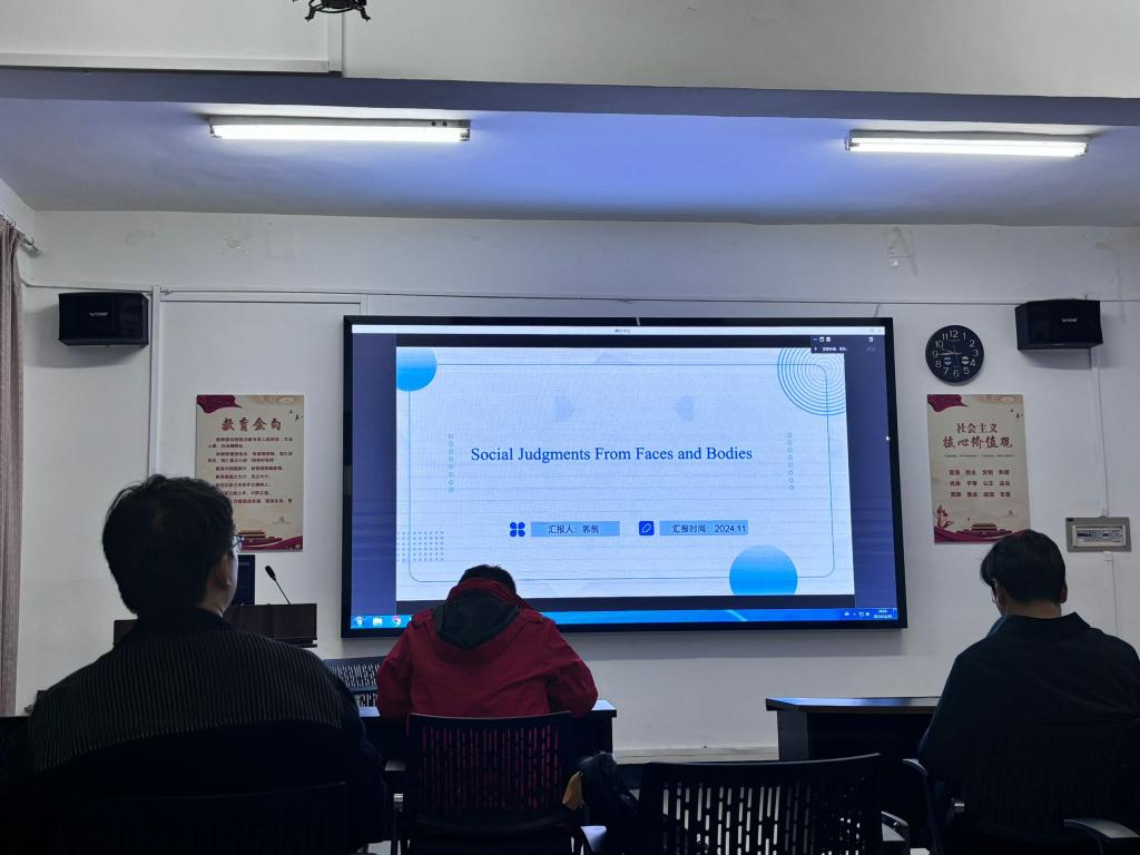 本次例会我们有幸听取了两位同学的精彩汇报。首先,郭靓同学进行了文献汇报主要探讨了从面部表情的社会判断。这告诉了我们在现实生活中我们要合理的运用好自身的身体和面部表情并且这个研究也提出了要多用眼动,脑电实验来探究行为。