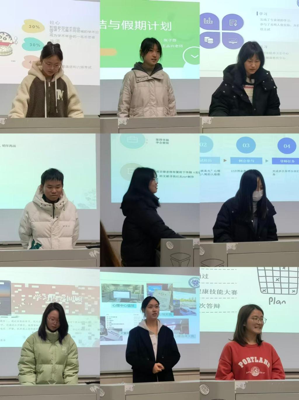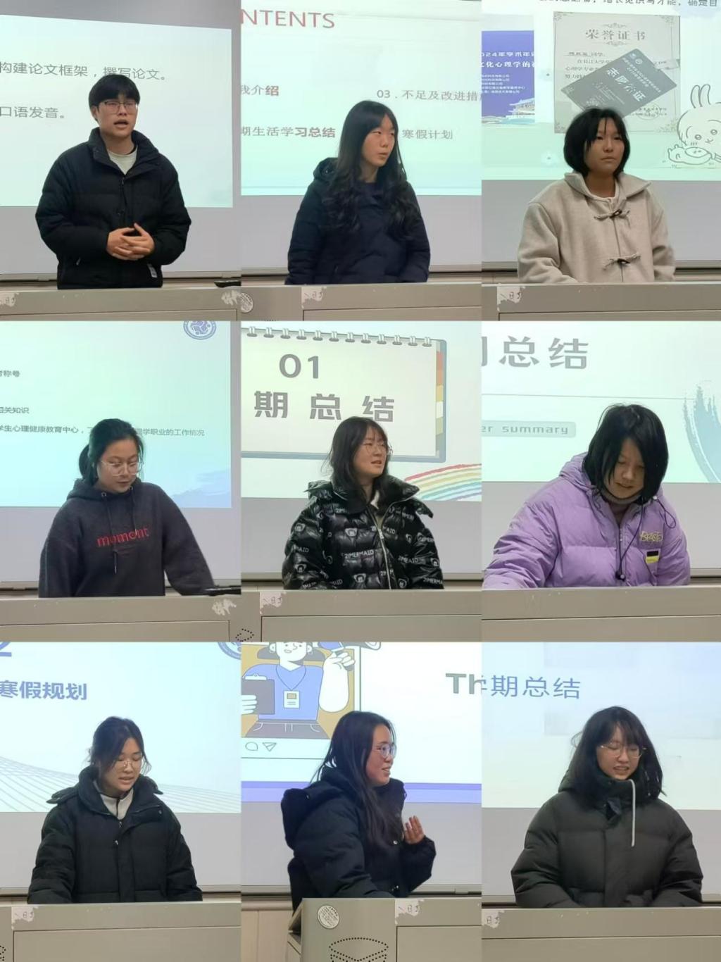 最后,本科生同学对本学期的课程学习、社团活动以及个人成长进行了总结,分享了在社心例会上的学习感悟,并对寒假的学习计划、技能提升以及社会实践进行了安排。