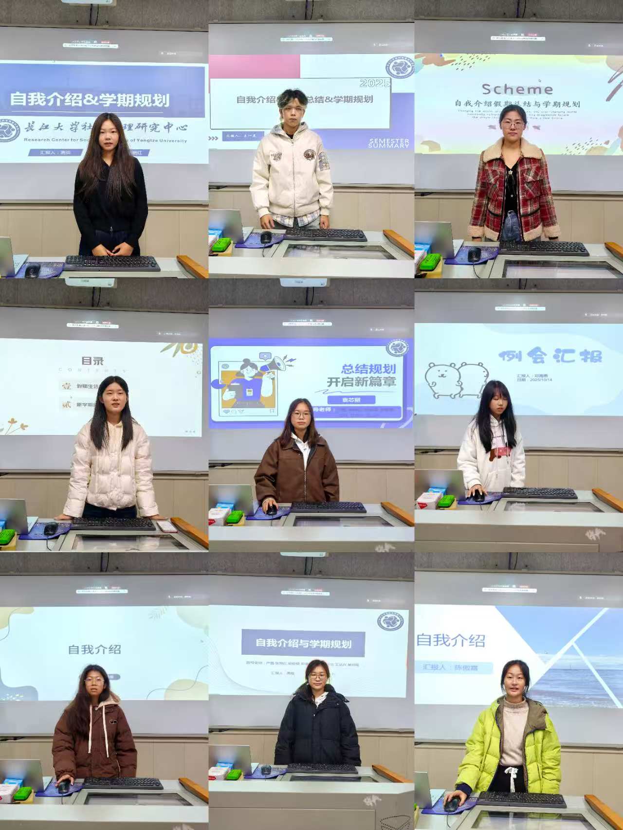 首先,本科生科研助理们进行了汇报,包括自我介绍、假期总结、学期规划三个方面。在学期规划方面,同学们对新学期的努力方向进行了详细规划,包括书籍阅读、考级考证、学习考研等方面。