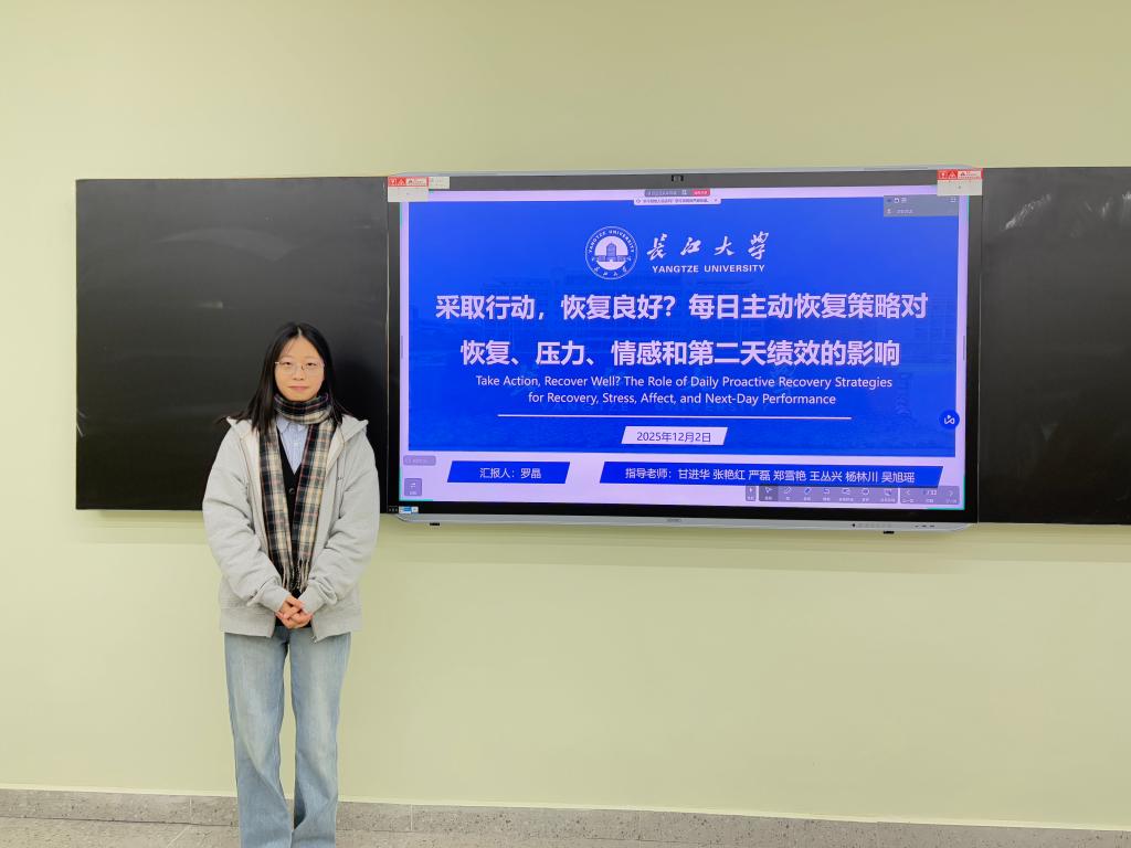 该研究以377名知识型员工为样本,通过两周日记法,探究每日主动恢复策略的影响。将策略分为回避(脱离,放松)与趋近(自主,掌握)两类,发现前者缓解压力与消极情绪,后者提升积极情绪与次日绩效,证实主动规划非工作时间的方式可助力身心恢复。汇报的最后,罗晶同学分享了其在学术与方法上的收获。