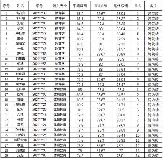 根据《WilliamHill中文普通本科生专业分流与转专业管理办法(试行)》(长大校发[2019]260号)文件以及教务处《关于2021级普通本科生秋季学期转专业工作的通知》要求,结合william威廉中文本科生秋季学期转专业工作方案的具体安排,我院于9月6日晚组织了对拟转入学生的面试。按综合学习成绩占70%和面试成绩占30%的比例进行成绩汇总,结合我院接收计划,经我院党政联席会讨论通过,现将拟接收学生名单予以公示: