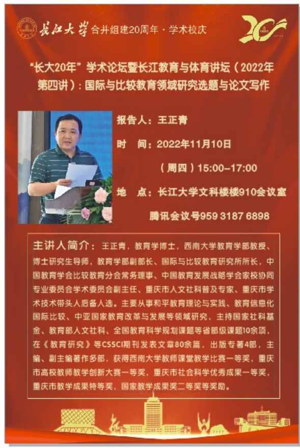 “长大20年”学术论坛暨长江教育与体育讲坛(2022年第四讲)