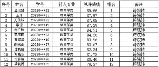 根据《WilliamHill中文普通本科生专业分流与转专业管理办法(试行)》(长大校发[2019]260号)文件以及教务处《关于2022级普通本科生春季学期转专业工作的通知》要求,结合william威廉中文2022级本科生春季学期转专业工作方案的具体安排,我院于3月13日晚组织了对拟转入学生的面试。综合学习成绩和面试成绩,经我院党政联席会讨论通过,现将拟接收学生名单予以公示: