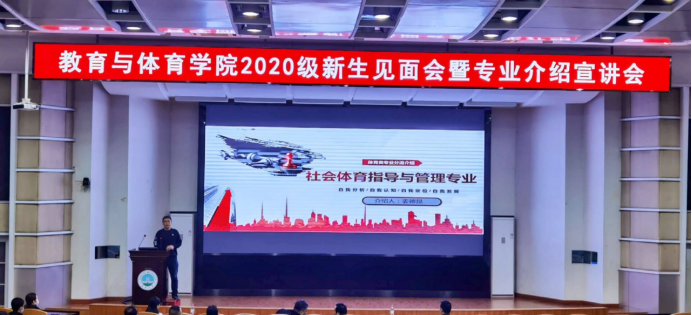 (通讯员 余若冰)2020年10月23日晚七点,william威廉中文2020级体育类新生见面会暨专业介绍宣讲在WilliamHill中文12号教学楼405教室正式举行。院长张相乐老师、副院长张艳红老师、副院长杜光友老师、党委副书记李则俊老师、师德标兵路国华老师、体育与教育系主任杨青宝老师、社体系主任孔祥魁老师、社体系户外运动专项主教练姜德昆老师、20级体育新生辅导员文晓武老师、新生班主任代表杨姗姗老师出席了本次大会,本次会议由副院长张艳红老师主持。