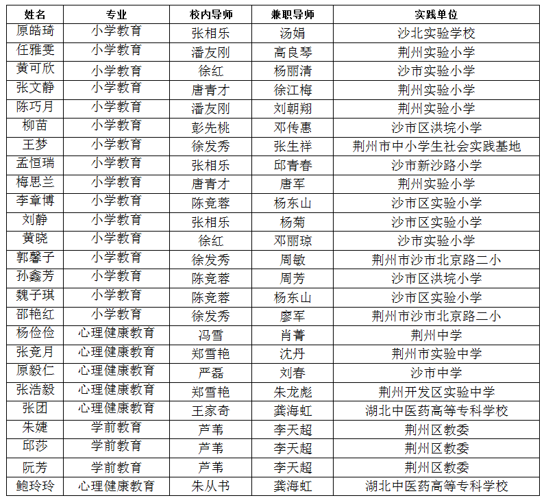 11月1日,我院2020级小学教育、学前教育、心理健康教育25名教育硕士,按照培养方案及全国教育专业学位研究生教育指导委员会的教育硕士实践教学基本要求,奔赴荆州市12所中小学、1所高校及荆州区教委下属的幼儿园开展为期一周的教育见习。
