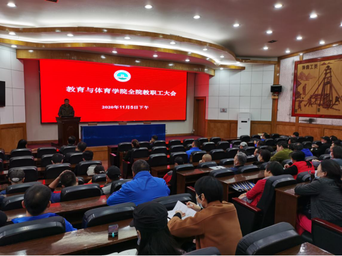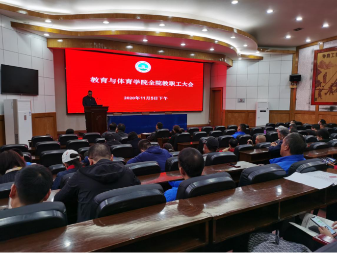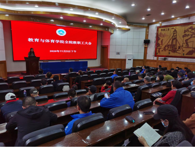 11月5日下午2:30,学院在11教报告厅召开了全院教职工大会暨政治理论学习会议。会议由喻克雄副院长主持,全院100多名教职工参加了本次会议。