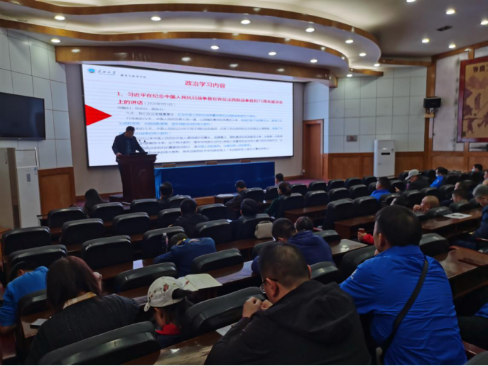 最后,按照学校政治理论学习安排,李则俊副书记带领全体教职工学习了《习近平在纪念中国人民抗日战争暨世界反法西斯战争胜利75周年座谈会上的讲话》、《习近平在全国抗击新冠肺炎疫情表彰大会上的讲话》、《习近平在教育文化卫生体育领域专家代表座谈会上的讲话》等讲话精神。