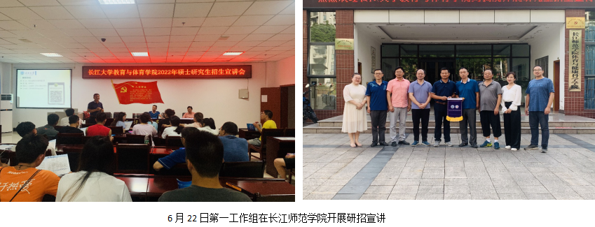 第二工作组由副院长张艳红带队,研究生导师徐发秀、王志伟老师一行3人于6月23日-24赴荆楚理工学院师范学院、湖北文理学院的体育学院、教育学院开展研招宣传活动。张贴海报,发放宣传册,徐发秀老师向有考研意向的学生作招生政策宣讲,张艳红院长和王志伟老师回答考生提问。工作组还与相关院系领导座谈交流,就研究生招生工作交换意见。