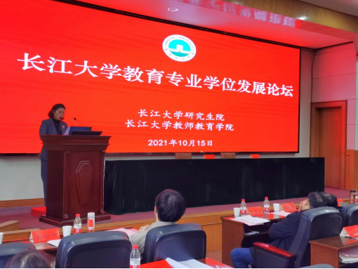 论坛由教师教育学院院长张相乐教授主持。论坛根据主题内容安排了七项议程。首先由研究生院副院长、研工部副部长(主持工作)赵辉教授宣读我校成立教育专业学位管理中心、成立教育专业学位研究生教育指导委员会的文件。随后,教师教育学院副院长熊猛博士作了题为《明确培养目标夯实培养过程 着力提升教育硕士培养质量》的主题报告,从我校教育专业学位发展简况、全国教育专业学位教指委工作要求、教育硕士培养导师及实践基地职责等方面,对全国教育专业学位研究生教育指导委员会有关要求做了详尽解读。