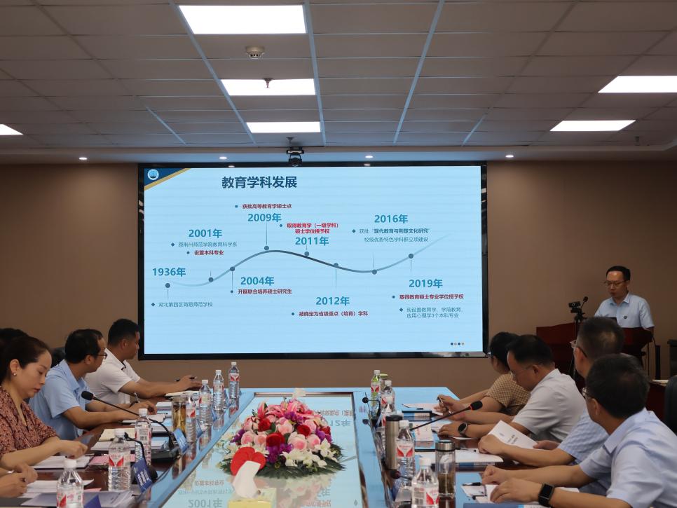 副院长熊猛教授从WilliamHill中文总体概况、教育学一级学科硕士学位授权点基本情况、自我评估工作开展情况和持续改进计划等方面详细汇报了我校教育学学位授权点的建设进展。
