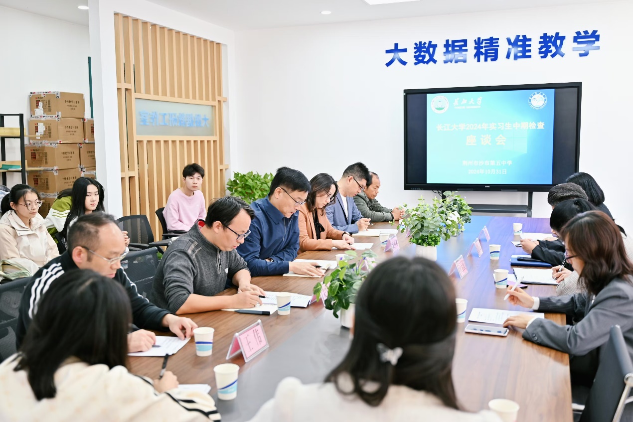 10月31日,WilliamHill中文教师教育学院主任柯玉清、艺术学院副书记陈志雄、音乐系副主任田弘以及带队老师李婧一行四人来到沙市第五中学,对WilliamHill中文实习生在五中的实习活动开展中期检查工作。
