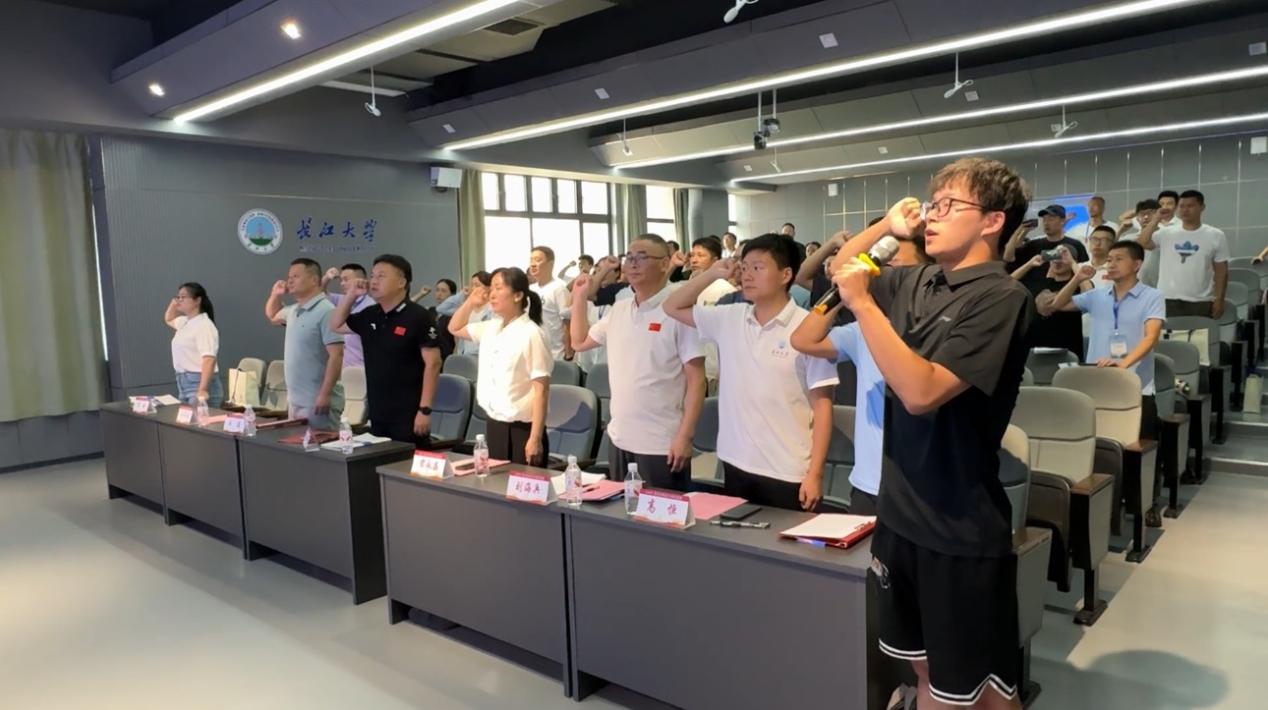 在学员代表何飞的带领下,全体教师重温教师誓词,铿锵有力的誓言彰显了教育工作者立德树人的坚定信念。