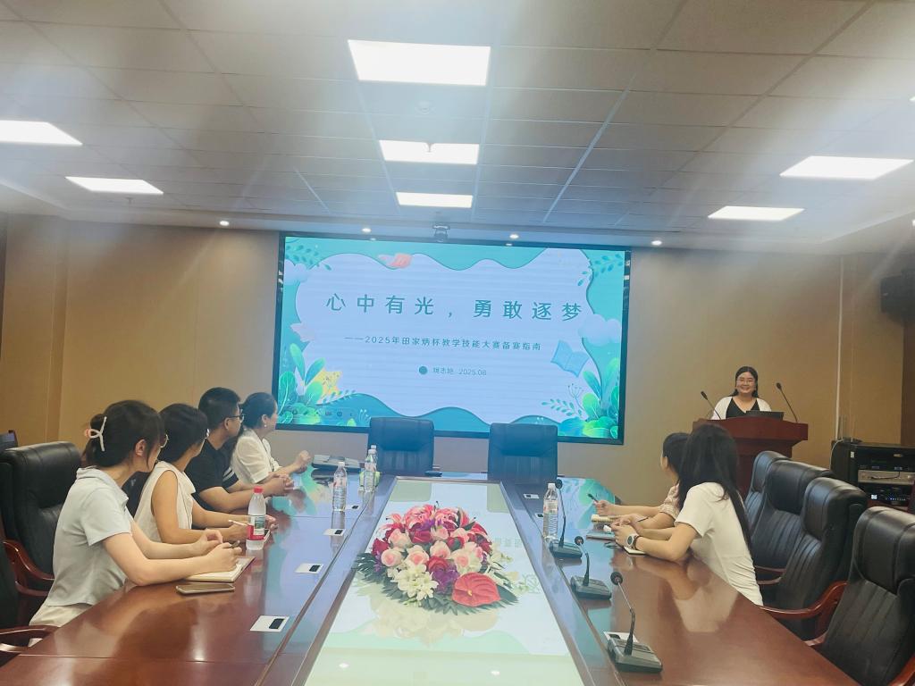 首先,姚志艳老师为同学们梳理了详细的备赛时间轴,包括积累期、整合期、冲刺期以及正式比赛,每个时期都囊括了时间节点与详尽的任务要求。其次,姚老师向同学们讲解了比赛每个环节的分值与注意事项,向同学们推荐了备赛期间需要使用到的参考书目、优质公众号等,同时还向同学们展示了如何迅速将书本知识与其他资源整合的方法。再次,姚老师向同学们呈现了去年比赛后评委对参赛选手们的总结点评,详细罗列了同学们在比赛过程中可能出错或存在不足的地方,并带领同学们进行了模拟练习。最后,同学们就心中的疑惑向姚老师提问,如“比赛时抽到准备不充分的题目怎么办?”“如何高效制作比赛PPT?”“如何把控每个教学环节的时间分配?”等,姚老师认真且专业地对同学们的疑问进行解答,同学们收获满满。
