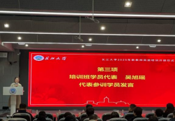 培训班学员吴旭瑶代表参训学员表决心“我们将以此为起点,尽快站稳讲台、深耕科研,不负学校的期望与重托。”樊鹏磊博士带领全体新进教师重温教师誓词。