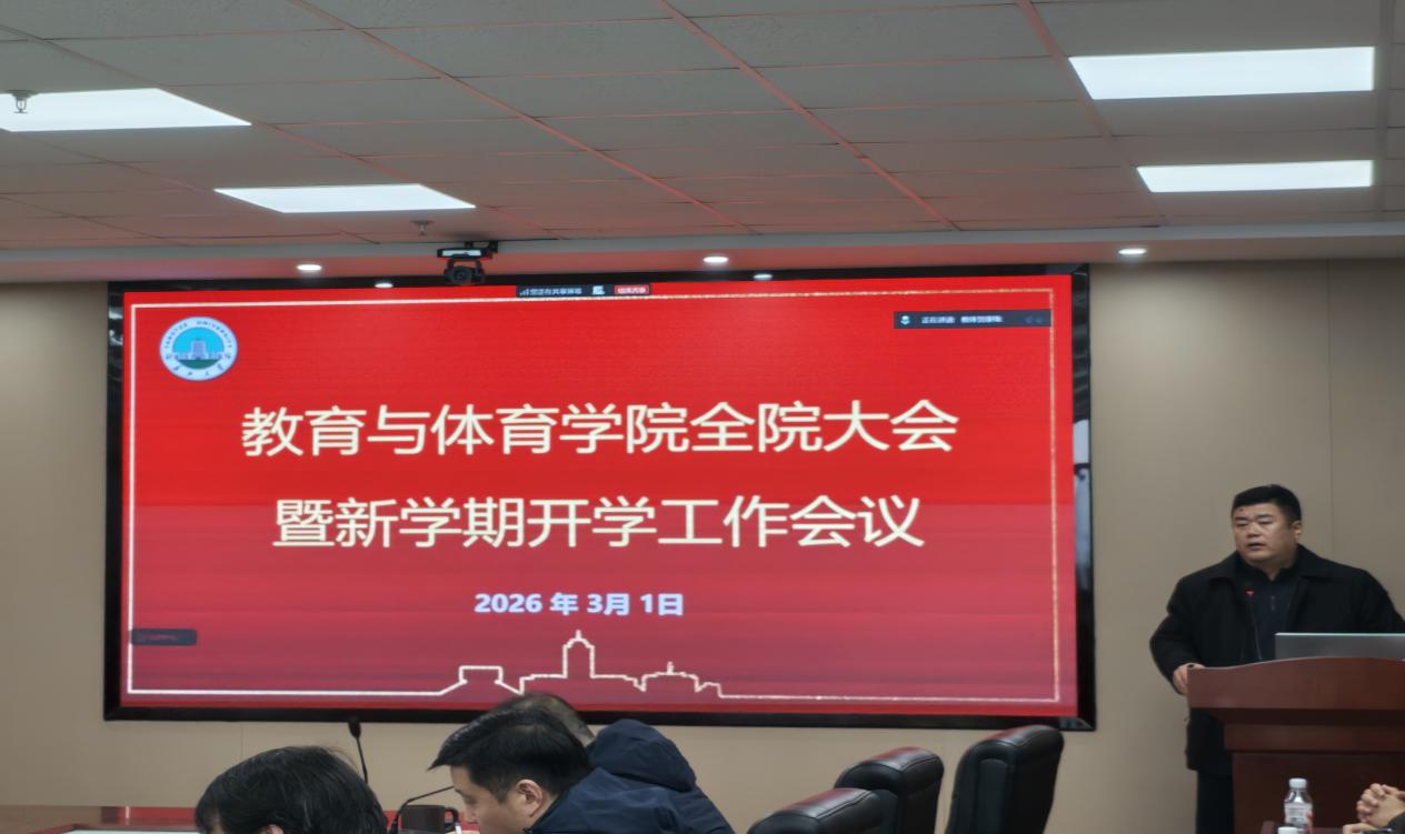 随后,张院长为全院教职工作题为“教以启智,体以强身,心以铸魂”的专题报告,报告全面回顾了学院2025年工作成效:学科建设稳步推进:教育专业博士点立项建设稳步推进, 体育学、教育学等学位点评估均获合格;科研突破成效显著:获批国家社会科学基金一般项目1项, 省部级科研成果奖实现层次与数量双提升;人才培养硕果累累:本科专业建设成效显著, 师生在教学竞赛中屡创佳绩, 研究生在全国"田家炳杯"等赛事中斩获10项大奖;育人模式特色凸显:国际化办学持续推进,"以体育人、以心育人、以教铸魂、以爱润心"的育人模式成效凸显,斩获全运会历史首枚奖牌;社会服务多点开花:承办多项国培、省培项目。同时, 报告也指出学院在学科特色凝练、平台项目成果突破、人才培养质量、师资队伍结构等方面仍需提升。