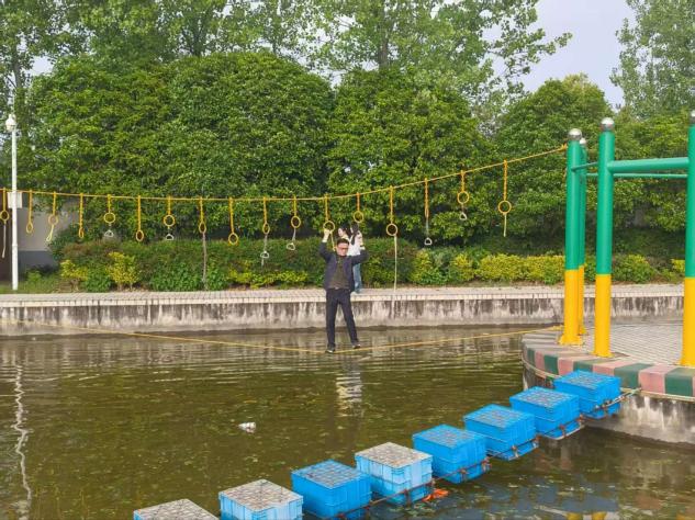 实践尾声,同学们集中深度体验了实践基地的水域特色训练板块。大家自主探索体验独木桥行走、绳索拉环闯关、户外攀岩挑战等特色项目,在亲身尝试中对中小学社会实践教育的训练体系与育人模式形成全面且直观的基础认知。一系列沉浸式特色实践项目,以实践为载体、以体验为抓手、以育人为核心,为基础教育提质增效精准赋能,有效开拓了教育学专业学子的教育视野,激发多元成长潜能,为未来深耕教育领域积蓄力量。