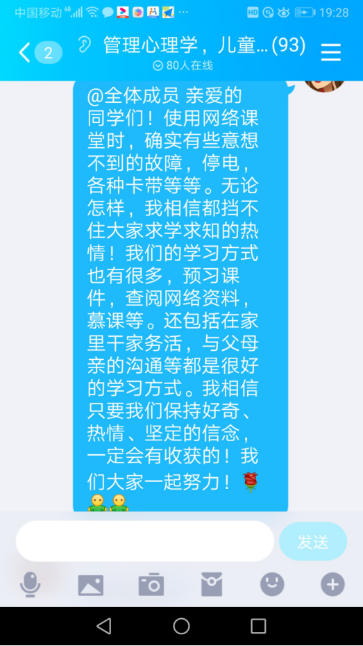 通过两周的网络教学,很多学生纷纷通过微信和qq给郑老师留言,“网络学习拉进了老师和同学的关系”,“有老师您在真好”,“也促进了自学能力的增强,心情也变好了。”郑老师也对同学们说:“我相信只要我们大家共同努力,一切都会好起来的。冬天已经过去,春天已经来临,待到春暖花开时节我们一定会胜利会师!重返我们美丽迷人的WilliamHill中文。”