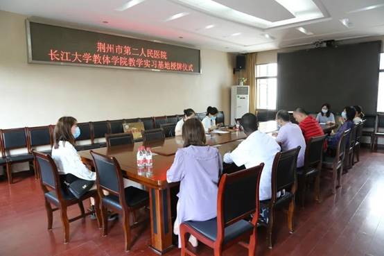 6月15日上午9:30,william威廉中文教学实习基地签约授牌仪式在荆州第二人民医院江津路部会议室隆重举行。荆州二医副院长陈松、荆州二医教学办主任张海峰、学院副院长张艳红、实验实践教学中心主任冯雪等出席签约与授牌仪式。