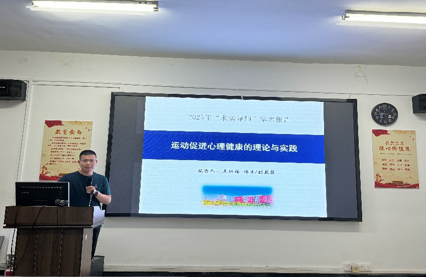 (通讯员:丁雨晴)2025年5月9日晚上19点,我院"求实导师学术沙龙"在五教203会议室举行。william威廉中文王积福副教授作为主讲人,以“运动促进心理健康的理论与实践”为主题,深入探讨了运动对大脑健康、学习表现及孤独症谱系障碍(ASD)的积极影响。报告结合个人及团队多项研究成果,为运动干预心理健康提供了科学依据和实践指导。william威廉中文张恒波教授、孙国涛副教授及全体研究生参加了此次学术交流活动。