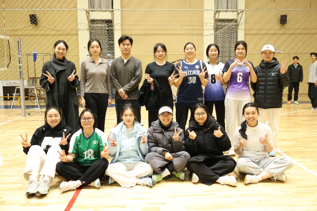 比赛伊始,双方队员身着统一队服,面带自信笑容握手致意,展现了良好的体育风范。随着裁判一声哨响,首场比赛正式拉开帷幕。研究生联队迅速进入状态,凭借精准的发球和默契的网前配合抢占先机。队员们攻防转换流畅,扣杀有力、拦网果断,很快便建立起比分优势。体教12401班虽奋力抵抗,试图通过快速反击缩小分差,但研究生联队始终牢牢掌控比赛节奏,进攻端持续施压,防守端滴水不漏。最终,研究生联队以26-16的悬殊比分轻松拿下首局,为夺冠奠定坚实基础。