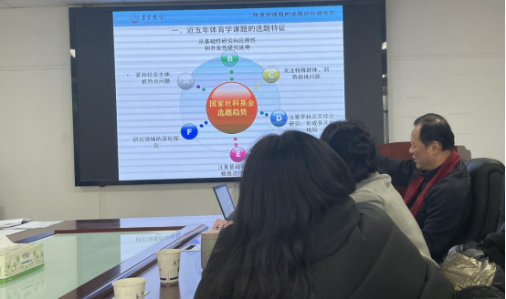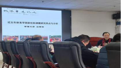 (通讯员冷思逸 杨启航)2月17日下午,我院在文科楼905会议室举行了“长大20年”学术论坛暨长江教育与体育讲坛2023年第一讲。本次特邀吉首大学教授、博士生导师白晋湘教授主讲,讲座题目为《近五年体育学国家社科课题研究热点与分析》。讲座由杜光友副院长主持,高明成书记、张相乐院长、袁新国教授等多名教师及研究生听取了讲座。