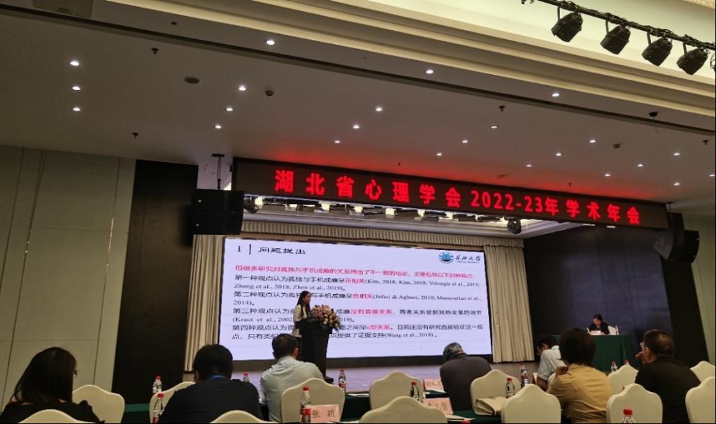 在大会报告环节,张艳红教授受邀在主会场作了“孤独感与手机成瘾”的大会重点报告并主持了社会与人格心理论坛分会场报告;熊猛教授受邀主持了网络心理与行为论坛分会场并作了“程序公正对网络集群行为倾向的影响及作用机制”的主题报告;朱晓伟副教授受邀参与了心理学人才培养论坛分会场研讨交流。心理学研究生程丽媛、魏文欣、任杰和体育学研究生杨玉娟分别围绕“网络小说成瘾与抑郁”、“权力感与大学生亲社会行为”、“童年压力与锻炼承诺”、“拖延行为的现状、热点与前沿”等主题在分会场作了学术报告。闭幕式上还举行了学术年会优秀论文颁奖仪式,熊猛教授提交的研究成果《程序公正对网络集群行为倾向的影响及作用机制》荣获优秀论文一等奖。
