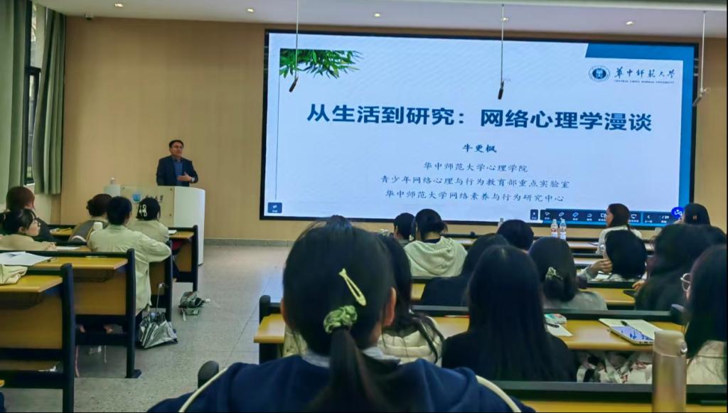 (通讯员: 亓少润)2025年10月16日下午,长江教育与体育讲坛2025年第七讲在16教A110教室顺利举办。本次讲座由华中师范大学心理学院教授、博士生导师、网络行为与素养研究中心主任牛更枫主讲,其主题为《从生活到研究:网络心理学漫谈》。讲座由我院心理系主任朱晓伟博士主持,院长张艳红及心理学专业全体师生到场聆听。