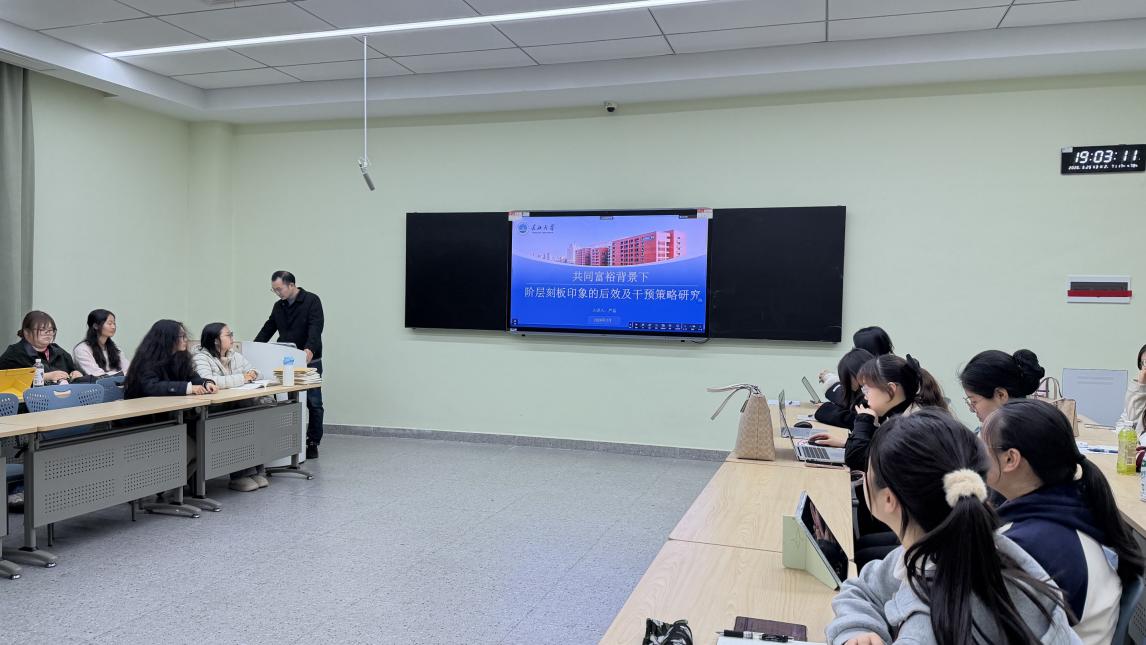 首先,严磊副教授带来题为“共同富裕背景下阶层刻板印象的后效及干预策略研究”的讲座。他结合团队最新研究成果,深刻剖析了上层“精明、冷漠、有能力、不真诚”与下层“懒惰、淳朴、能力低、热情”的阶层刻板印象典型表现,并界定了阶层刻板印象、阶层冲突等核心概念,依托刻板印象内容模型、社会认同理论搭建研究框架。