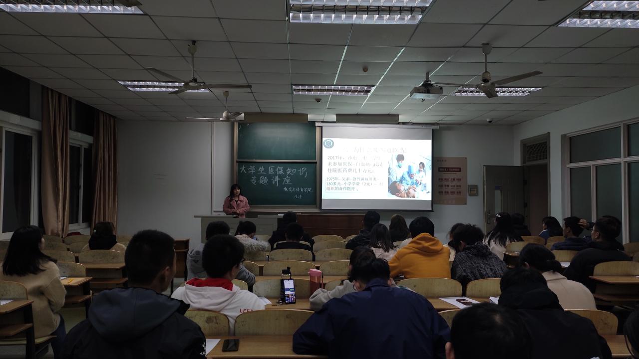 首先许静婷老师对“荆州市城乡居民基本医疗保险”做了简单介绍,包括为什么参加医保?参加医保能享受什么待遇?要注意些什么?特别对参保后能享受的普通门诊报销、门诊慢性病报销、疾病住院报销、意外伤害住院报销、分娩住院报销、大病保险报销的六种待遇进行了详细介绍,对新生、毕业生参保的优惠政策也进行说明。此外,许老师还对学校《大学生医疗保险知识》、《WilliamHill中文关于调整大学生基本医疗保险缴费标准和方式的通知》、《关于市值大学生网上办理医保业务的通知》等政策文件进行了讲解,强调了大学生医保缴费的标准、方式、截至时间。