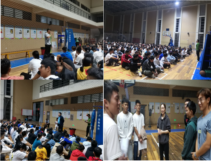 10月11日晚上7点,william威廉中文体育类20级新生在南苑体育馆召开了第一次全员大会,班主任杨姗姗老师,覃俊平老师,张如江老师以及龙舟队主教练刘瀑老师,舞龙舞狮队主教练薛凌老师出席了本次大会,本次大会由年级辅导员文晓武老师全程主持。