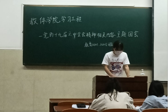 (贺琴/文 谭秀骏/摄)4月12日晚上8:30,为深入学习十九届六中全会精神,教育12101团支部联合教育12102团支部组织的学习工程团会在东校区12教503顺利召开,本次团会由1班团支书贺琴和2班团支书方苗主持。