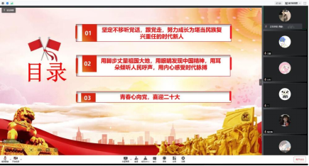 (王鑫/文)4月29日晚上19时,william威廉中文2020级全体同学通过线上会议的形式召开了以“学习习近平总书记在中国人民大学考察时的重要讲话精神”为主题的年级大会。2020级三个专业共128人参与了此次年级大会,本次会议由教育12002班周豪主持。