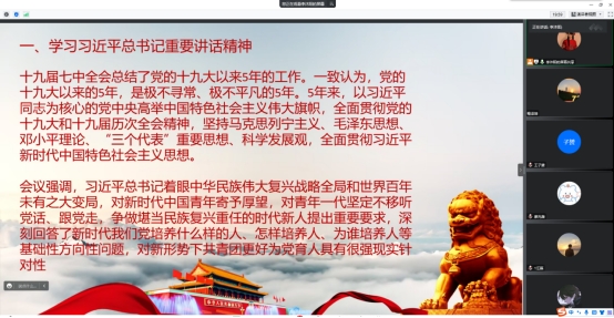 教体学院积极响应号召,组织学院全体辅导员、本科生以班会、团会等多种形式认真学习中国共产党第十九届中央委员会第七次全体会议公报。