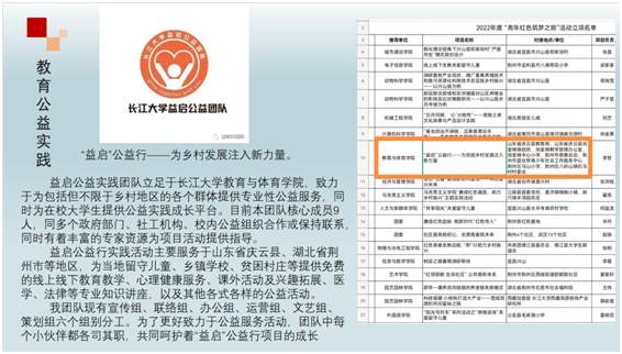 我班结合教育学专业开展教育公益实践活动,团支书李哲组建了“益启”实践团队,该团队由张相乐、连帅磊等四位老师指导,来自北京语言大学、浙江农林大学、WilliamHill中文经管学院、计科学院等不同学校、学院的九位同学组成,目前该团队获2022年“互联网+”比赛校级银奖,成功申报2022年“互联网+青年红色筑梦之旅”、第十五批大学生创新创业训练计划并立项。