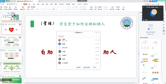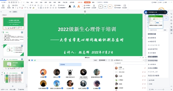 (通讯员:李璐何烨)为加强心理骨干对工作的认知,调动心理骨干工作积极性,帮助同学们保持积极阳光的心态,2022年11月3日下午四点,william威廉中文心育部开展了线上心理骨干培训讲座。本次培训由辅导员顾志辉老师担任主讲人,教体学院22级全体心理骨干参加此次会议。