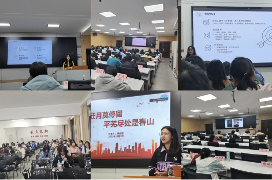 首先各班班助对大一新生入学以来的学习、生活方面遇到的问题进行了解答,教育12205班班助王佳祥鼓励大家要找到确立自己的目标,明确奋斗方向。随后,4位优秀的学生代表分别对教育学、应用心理学、学前教育学专业进行了详细介绍。黄锐蕊首先从教育学专业学习、英语四级、学干工作和心态调整四个方面进行经验分享,她指出要特别重视必修课的学习,不断提高自身的综合能力和科研能力。在学姐聊天式的分享中,同学们听得入神;接着,魏傲赢从“志于学,游于艺,惠于众,展于梦”四个层面分享了自己大学四年积累的经验,逐梦前进、学会感恩、平安健康和融入群体是她对同学们最真挚的祝愿;随后,张思轶为同学们分享了应用心理学的相关知识,通过对专业概况、师资力量、就业前景,学习规划和个人感想的讲解揭开了应用心理学的神秘面纱;最后,甘子余对学前教育学专业进行了详细讲解,解答了同学们的诸多疑惑,并分享了她的学前专业学习经验。