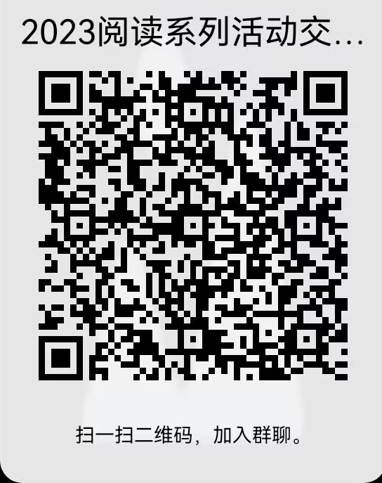 全体学生可通过加入“2023阅读系列活动交流群”参与五个活动或选择其中任意一个或几个。QQ群号:749277331,相关活动动态会在群内实时发布。