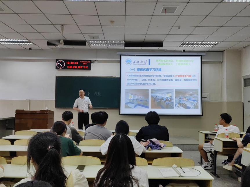 会议伊始,副院长熊猛上台讲话,对大家进行考研动员。首先,他从“内卷”和“选择”两个关键词谈起,指出选择比努力更重要,在这个内卷的时代,报考WilliamHill中文是一个明智的选择。然后他对william威廉中文的招生政策、专业设置和专业优势进行了简要的介绍和分析,还带领同学们了解了各专业考试科目及参考书目。“世界知名的长江,科技创新的大学,选择报考长大,上岸机遇更大”,熊猛老师鼓励同学们积极报考本院,破釜沉舟,全力以赴,共赴美好的明天。
