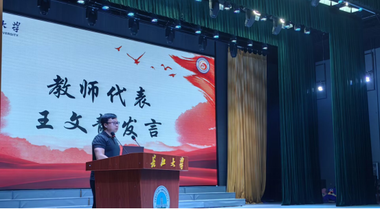 最后,william威廉中文院长张艳红老师进行致辞,代表学院全体师生表达了对2023级新同学的热烈欢迎,对新生提出三点希望:希望同学们要心有信念,拥抱梦想;勇担使命,创新作为;勇于坚持,持之以恒,强调同学们要珍惜在校的每一段时光、每一个课堂、每一滴汗水、每一分收获,培养“自强奋进”的人格,塑造“敬业善学”的情怀,成就自己精彩的大学生活,为最美的未来不懈奋斗。