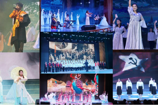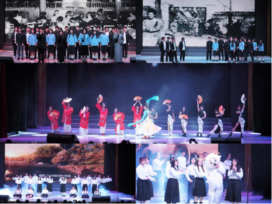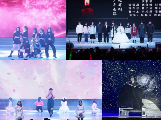 紧接着,《入画敦煌》蹁跹的衣袂带领观众们步入第三篇章“铿锵行·共创未来”。在舞台剧《青春中国》的朗诵声中,五四运动的呐喊穿透百年岁月,仍在青年们的心中久久回荡;身穿藏服,手捧金色哈达,《纳瓦吉瓦》用藏语表达对全体师生的美好祝愿,充分展现了鲜明民族特色;大合唱《如愿》为过去的2023年画下圆满的句号。全体师生共度今宵,共抒情谊,展现出教体学院团结向上、和谐进取的氛围。