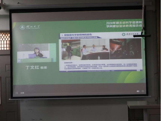 出席本次会议的有湖北大学党委书记谢红星、湖北省科协党组书记、副主席周德文同志、武汉科技大学丁文红教授。会议伊始,由湖北大学党委书记谢红星讲话,对于深入推进科学道德和学风建设工作做出指示。湖北省科协党组书记、副主席周德文同志致辞,他强调弘扬科学精神,坚守科学道德的重要性,面对目前违背科研诚信行为时有发生的现象,他表明,中国式现代化依靠科技创新而生,我们应做到坚定理想信念,坚守诚信底线,实现科技创新和科技自立自强。