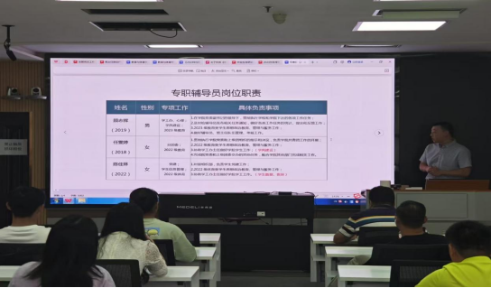 党委副书记何可可首先对各个辅导员的各自分管事项进行了介绍,并对国庆校友节以及节前节后的安全管理教育工作进行了提醒与部署。