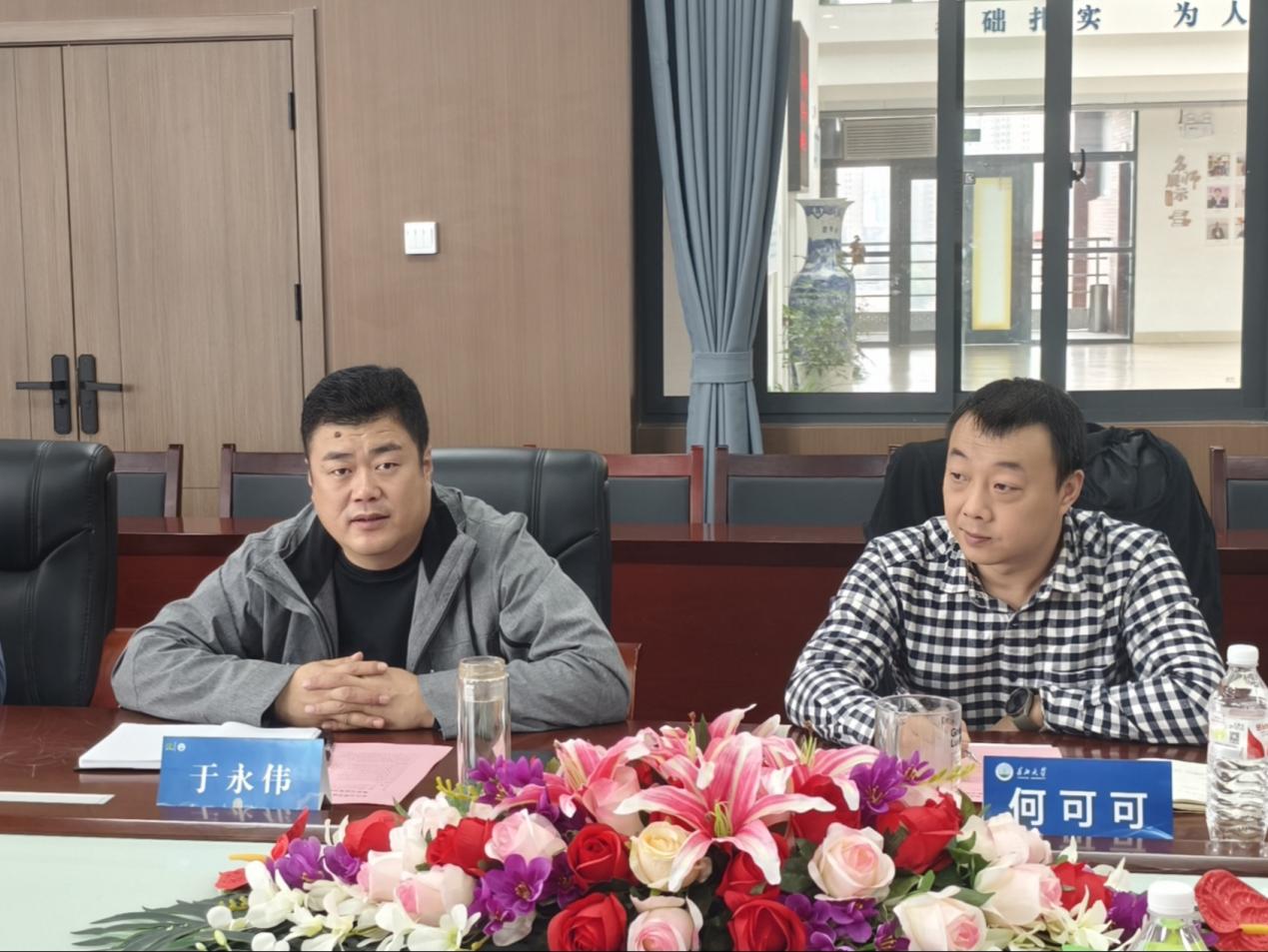 兼职辅导员文艺萌汇报了我院的党建工作以及我院的开放实训平台——教师教育技能训练中心。在接下来讨论交流环节,范主任就班主任工作、师范生就业工作和学生心理工作与我院进行了深入的探讨和交流。