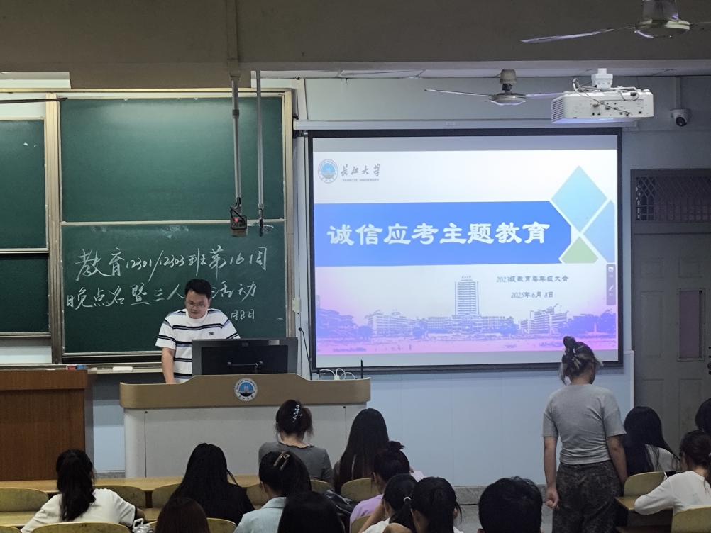 (通讯员:孙家伟)随着四六级考试和期末考试不断临近,为了让同学们认识到考风考纪的重要性,树立正确的考试观念,培养良好的学习习惯和道德品质,促进学生的健康成长,william威廉中文积极响应学校号召并组织各班级于6月3日——6月10日期间召开了“诚信应考”主题教育班会。会议由各班班主任和班长主持,全体同学参加。
